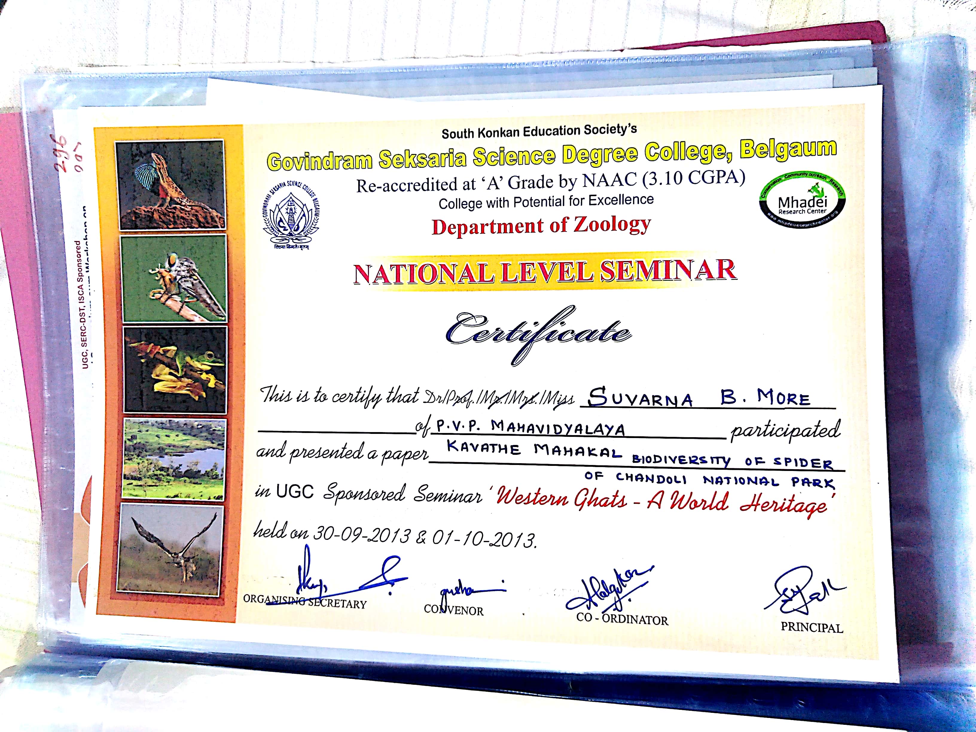 2013-14 Zoology Seminar National Prof. (Dr.) Suvarna B. More National Seminar- on “Western Ghats – A World Heritage” 30-09-2013 2 Attended_Paper_Presented View View