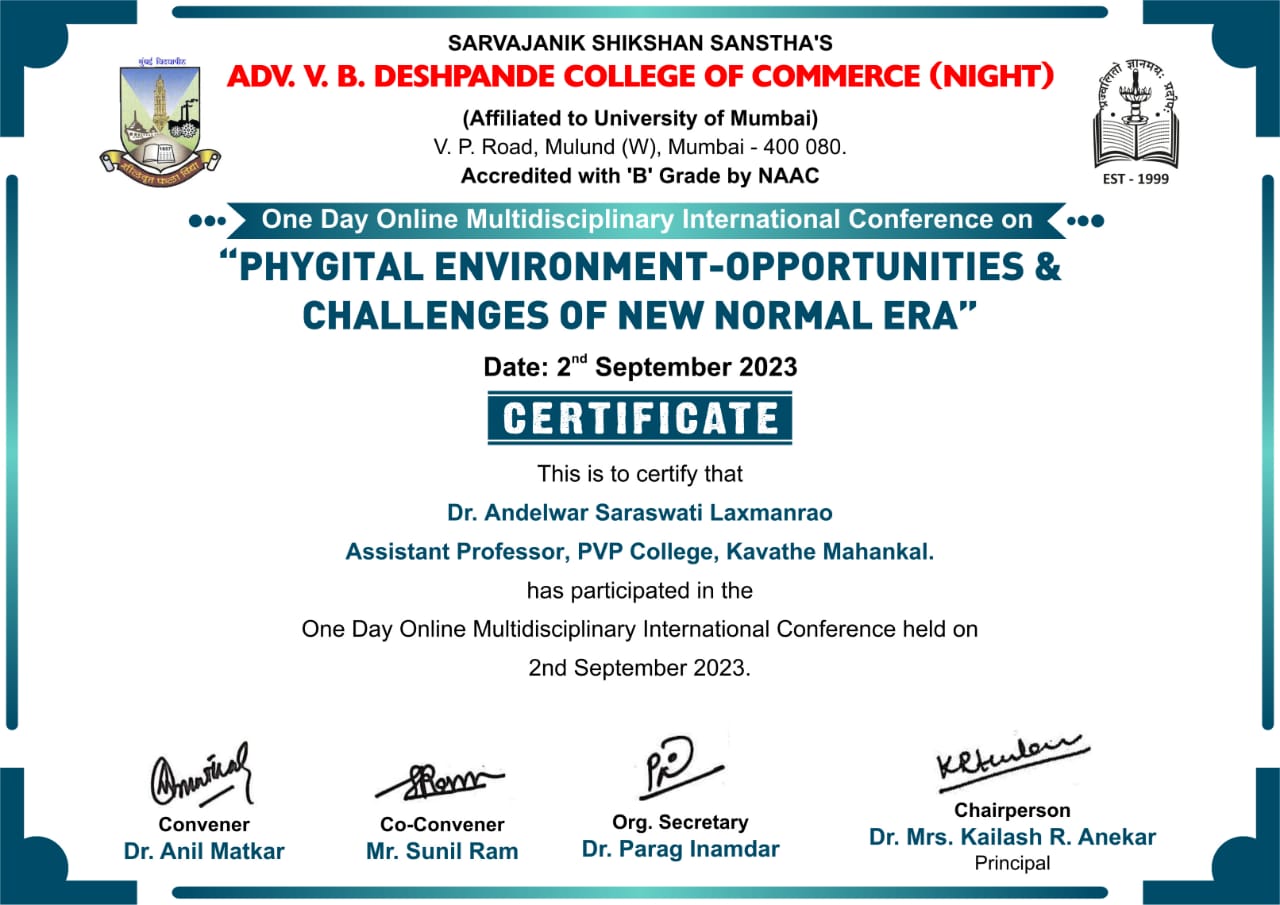 2023-24 Economics Conference International Mr. Ramdas Ramesh Vasave PHYGITATAL ENVIRONMENT-OPPORTUNITIES & CHALLENGES OF NEW NORMAL ERA 02-09-2023 1 Attended View View