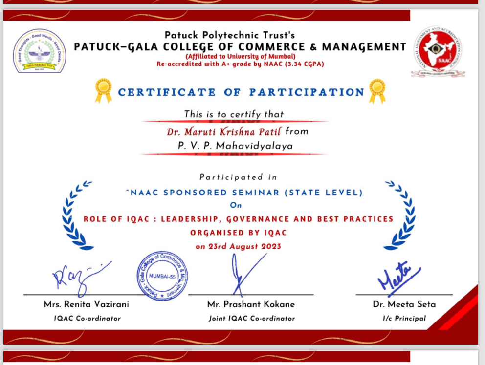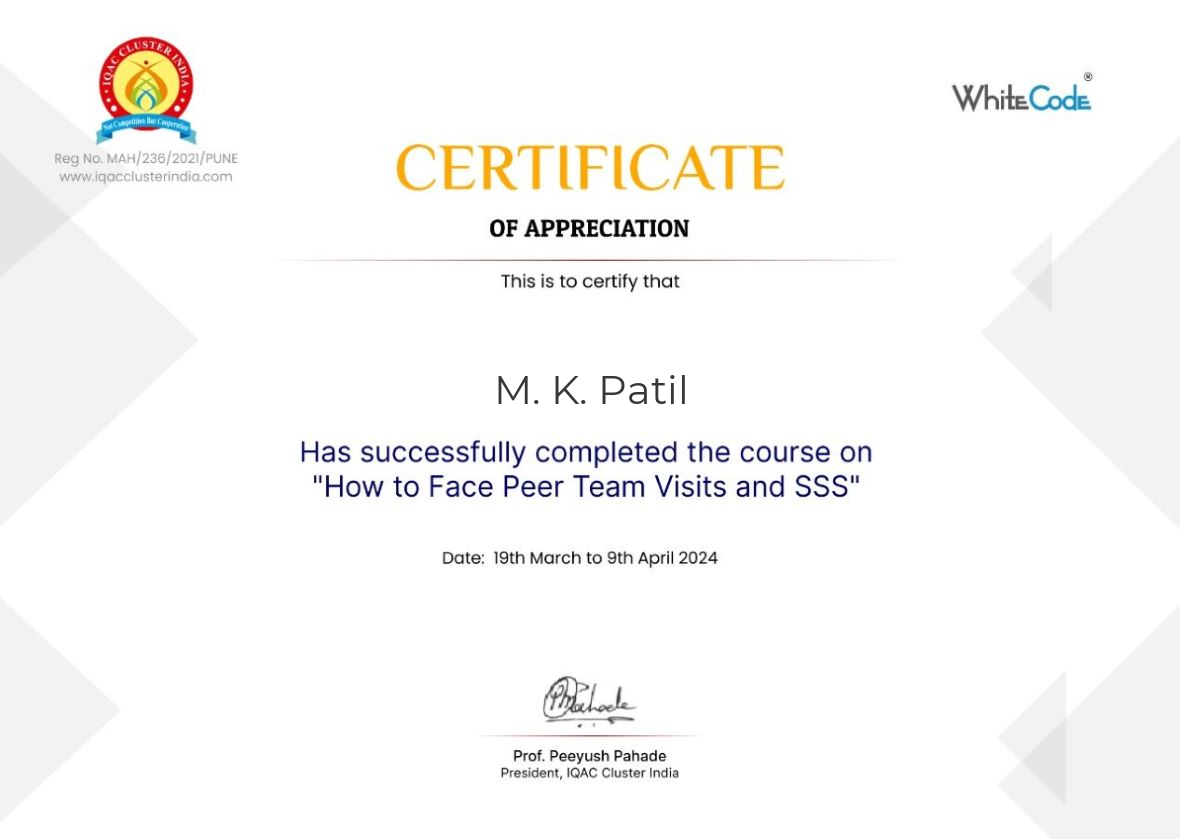 2023-24 Statistics Seminar National Dr. M. K. Patil Course on How to Face PEER Team Visits and SSS 09-04-2024 4 Attended View View