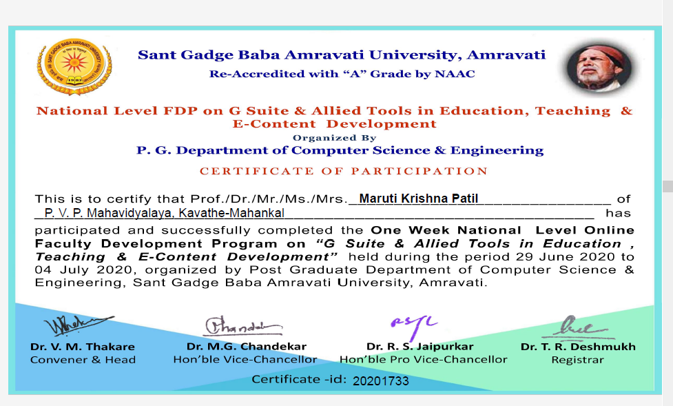 2023-24 English FDP National Mr. S. S. Kamble Practical Aspects of ICT Tools and online Teaching in current Scenario 02-10-2023 10 Attended View View