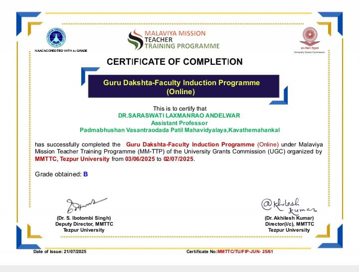 2025-26 Marathi Other National Dr.Saraswati Laxmanrao Andelwar Faculty Induction Programme 03-06-2025 30 Attended View View