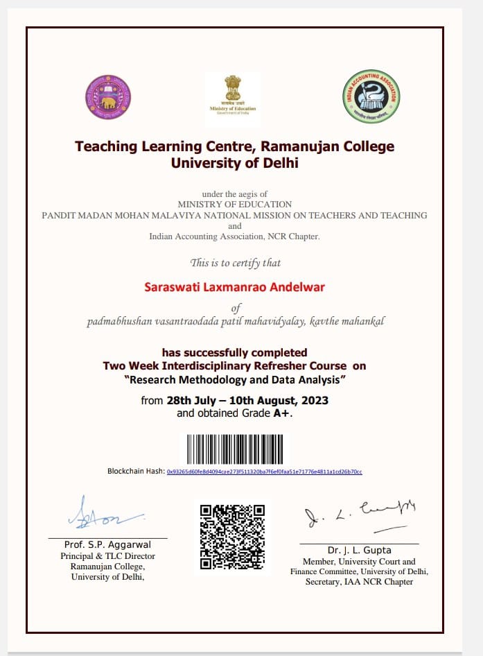 2025-26 Marathi Other National Dr.Saraswati Laxmanrao Andelwar MMTTC,UGC Sponsored Refresher Course on Interrelationship Between Indian Lenguage and Cinema 06-08-2025 15 Attended View View