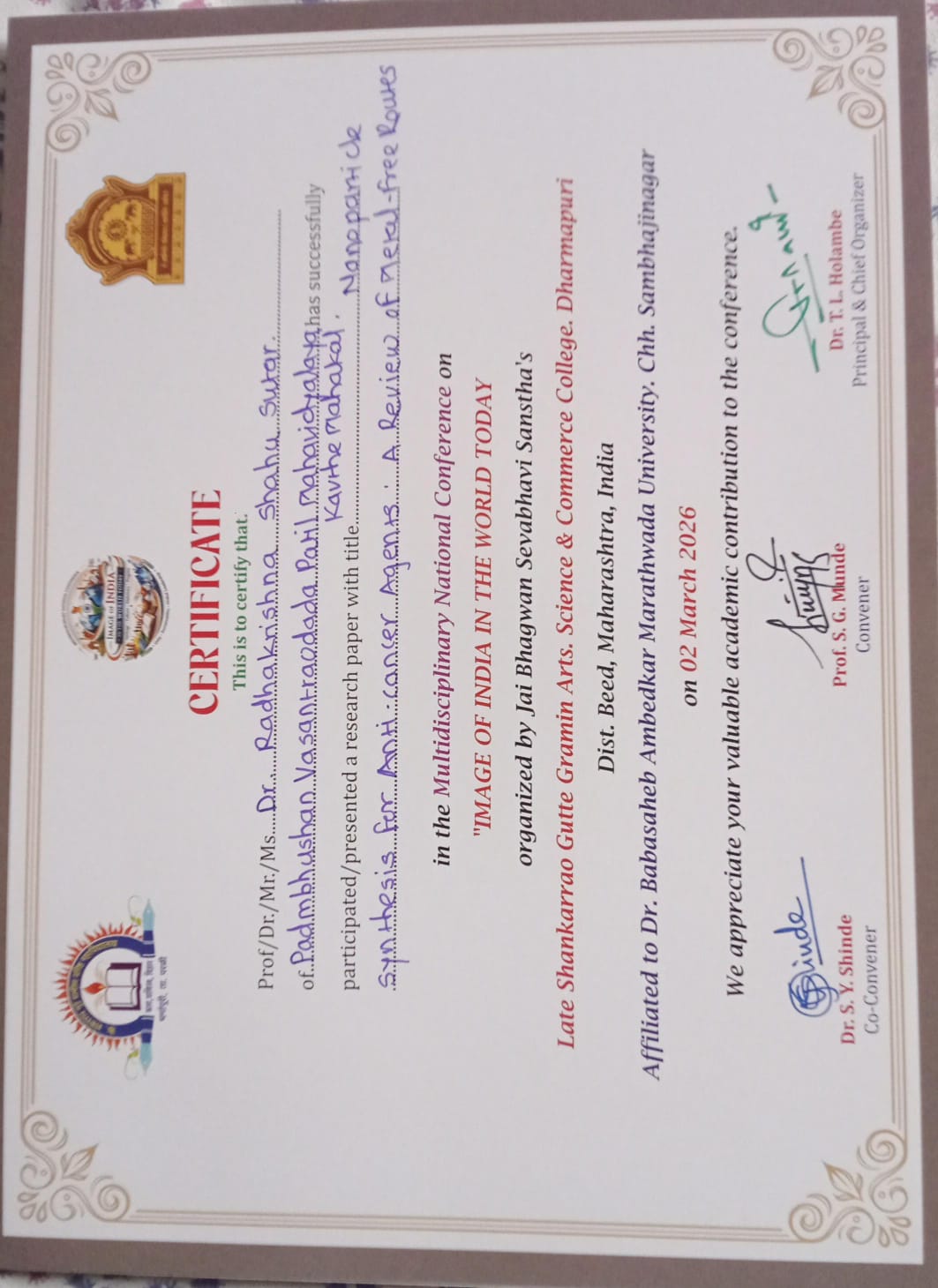 2025-26 Chemistry Conference National Dr. R. S. Sutar Multidisciplinary National Conference on the Image of India In the World Today 02-03-2026 1 Attended View View