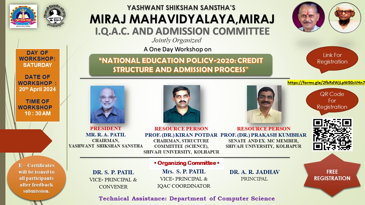 2023-24 Statistics Workshop Local_University Dr. M. K. Patil National Education Policy 2020 : Credit Structure and Admission Process 20-04-2024 1 Attended View View